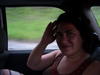 …And with our still-frightened chicken! After many hours driving, Moni took the wheels.